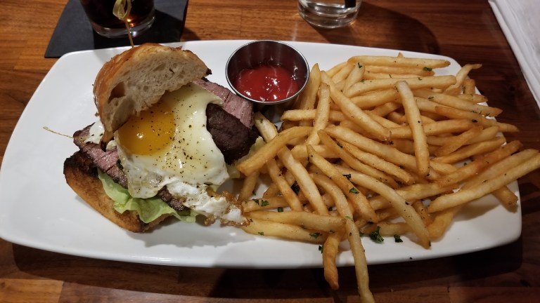 I got a sliced tenderloin sandwich with a fried egg, butter lettuce and provolone. It came with a side of french fries and it was very good. The meat is cooked to your liking.